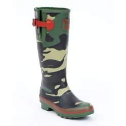 Dieser schicke Gummistiefel der englischen Marke Evercreatures verfügt über einen verstellbaren Schaft. Dabei können Sie den Schaft einfach mit einem praktischen Riemen anpassen. Dieses Modell hat einen auffälligen Tarnfarben-Print und ein herausnehmbares Fußbett aus Baumwolle. Somit können Sie bei Bedarf auch ein eigenes Fußbett verwenden. Das EVA Gummi ist zudem beständig gegen UV-Strahlung. Dieser Stiefel eignet sich sowohl für Outdoor-Aktivitäten, als auch für den normalen täglichen Gebrauch.