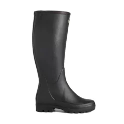 Diese schlichten Gummistiefel für Damen stammen von der renommierten Marke Le Chameau. Die Gummistiefel haben ein hohes Modell und ein Außenmaterial aus Naturkautschuk. Dieses Material ist extrem strapazierfähig und absolut wasserdicht, so dass Sie leicht in einen Teich steigen können. Die Innenseite hat ein angenehmes Innenfutter aus Baumwolle und Polyester. Diese Materialien trocknen schnell nach Kontakt mit Wasser und sorgen für angenehme Wärme bei Temperaturen um 0 ° C. Das Fußbett und die Innensohle sind mit Dual-Density-Technologie ausgestattet. Dies bietet nicht nur eine gute Unterstützung für Ihren Fuß beim Gehen, die Technologie bietet auch Stabilität und Stoßdämpfung. So fühlen sich Ihre Füße nach einem Spaziergang weniger müde an. Die Sohle hat ein extra grobes Profil zum Laufen. Dieser robuste Stiefel hat eine hohe Qualität und wird komplett von Hand gefertigt. Dank der verstellbaren Schnalle hat der Stiefel auch eine schöne Passform.