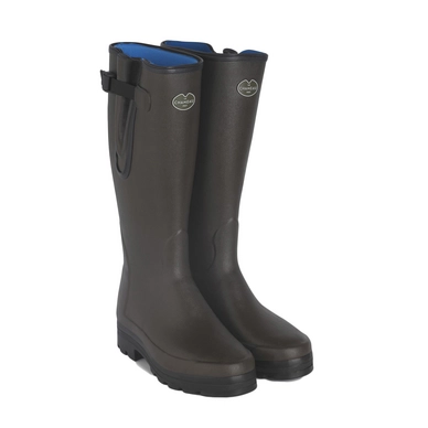 Diese schlichten Gummistiefel für Herren stammen von der renommierten Marke Le Chameau. Die Gummistiefel haben ein hohes Modell und ein Außenmaterial aus Naturkautschuk. Dieses Material ist extrem strapazierfähig und absolut wasserdicht, so dass Sie leicht in einen Teich steigen können. Die Innenseite ist mit einem Futter aus Neopren versehen. Dieses schnell trocknende Material bietet Wärme bis zu -15 ° C und dank der weichen Pads ist dieser Stiefel sehr bequem. Das Fußbett und die Innensohle sind mit Dual-Density-Technologie ausgestattet. Dies bietet nicht nur eine gute Unterstützung für Ihren Fuß beim Gehen, die Technologie bietet auch Stabilität und Stoßdämpfung. Dank der zusätzlichen Anti-Fatique-Technologie sorgt diese Unterstützung dafür, dass Ihre Füße beim Gehen weniger müde werden. Die Sohle hat ein extra grobes Profil, so dass Sie bei rutschigen und unebenen Bedingungen griffig sind. Dieser robuste Stiefel hat eine hohe Qualität und wird komplett von Hand gefertigt. Dank der verstellbaren Schnalle hat der Stiefel auch eine schöne Passform.