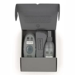 Dieses vielseitige Gummistiefel-Pflegeset von Hunter bietet Ihnen alle Produkte, die Sie für eine sorgfältige Pflege Ihrer Gummistiefel benötigen. Diese Box ist mit verschiedenen Produkten wie dem Rubber Buffer Spray versehen, um Ihre Stiefel gut sauber zu bekommen und zu schützen. Mit dem „Boot Shine“ Stiefelglanz Schwamm geben Sie Ihren Gummistiefeln wieder einen schönen Glanz. Hierfür können Sie das mitgelieferte Putztuch verwenden. Dieses Pflege-Set ist nicht für Nubuk, Veloursleder oder eingefettete Ledersorten geeignet.