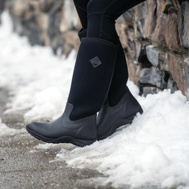 Dieser Schneestiefel der Marke Muck Boot ist ein eleganter und bequemer Schuh für Outdoor-Enthusiasten. Der Damenstiefel ist mit Flecce gefüttert und sorgt daher bei bis zu -30 Grad für warme Füße. Auch bei nassen und kalten Bedingungen bietet der Stiefel dank des EVA-Fußbetts optimalen Komfort. Die Sohle dämpft entstehende Stöße während des Gehens ab. Zusätzlich ist der Schuh mit einer Anti-Rutsch-Sohle und eine verstärkten Achillesferse ausgestattet.